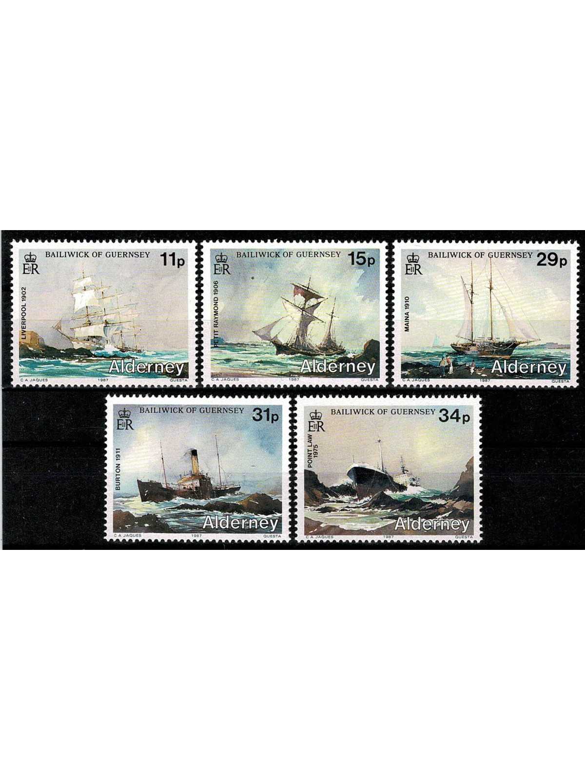 1987 ALDERNEY ANNATA COMPLETA 5 VALORI NUOVI MNH MF56948
