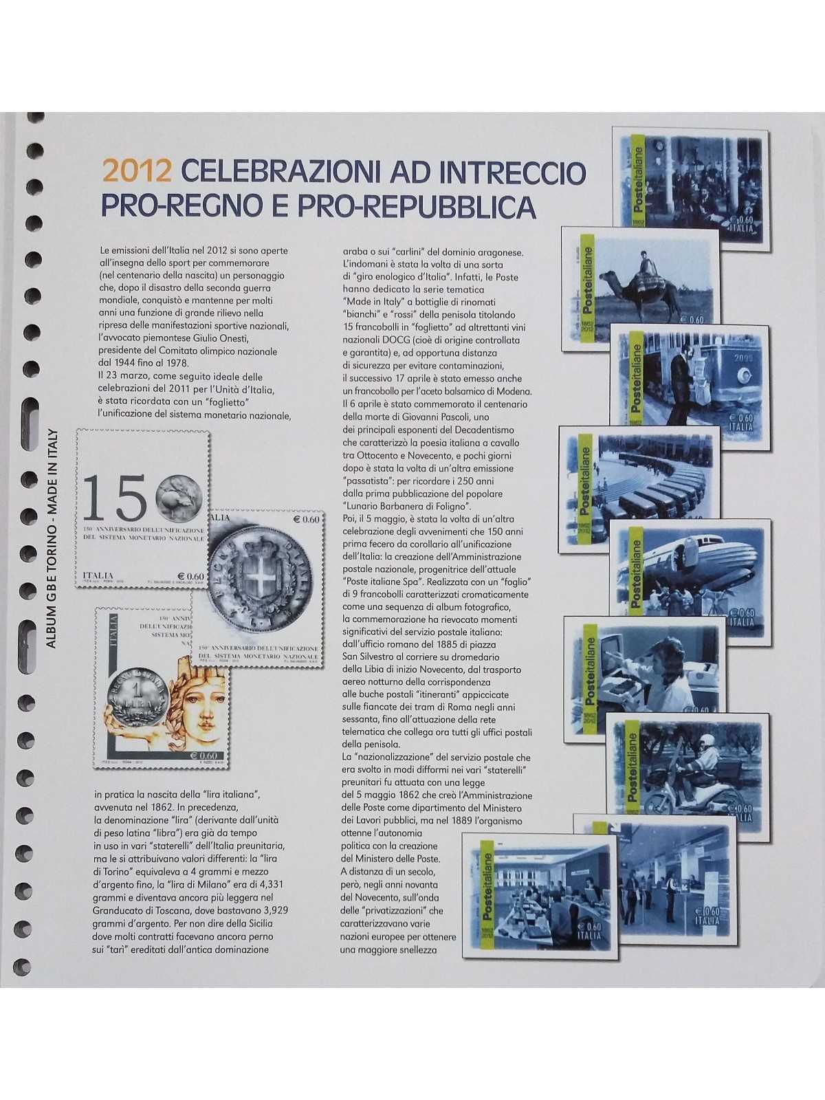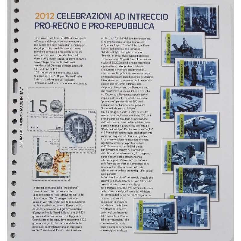 NEL PRESENTE ALBUM TROVANO POSTO SOLO I FRANCOBOLLI EMESSI NELL'ANNO 2012