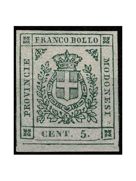 1859 DUCATO DI MODENA GOVERNO PROVVISORIO 5 CENT VERDE N 12 MLH SORANI MF52784