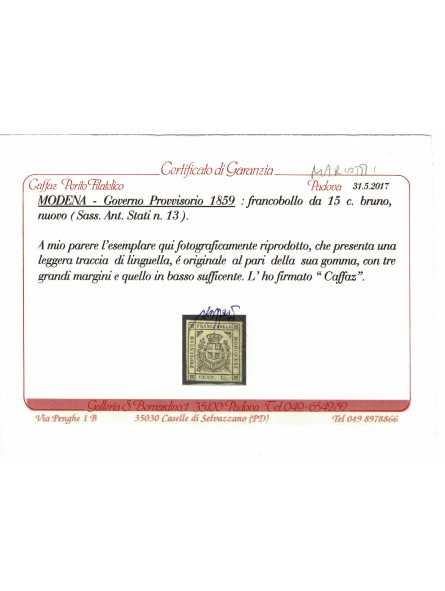 1859 DUCATO DI MODENA GOVERNO PROVVISORIO 15 CENT BRUNO N. 13 MLH CAFFAZ MF27122