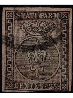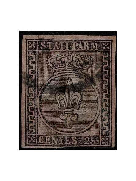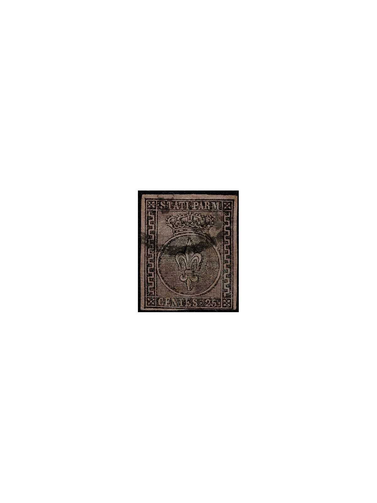 1852 DUCATO DI PARMA 25 CENTESIMI VIOLETTO N. 4 USATO MF54122