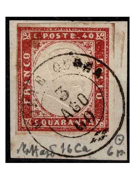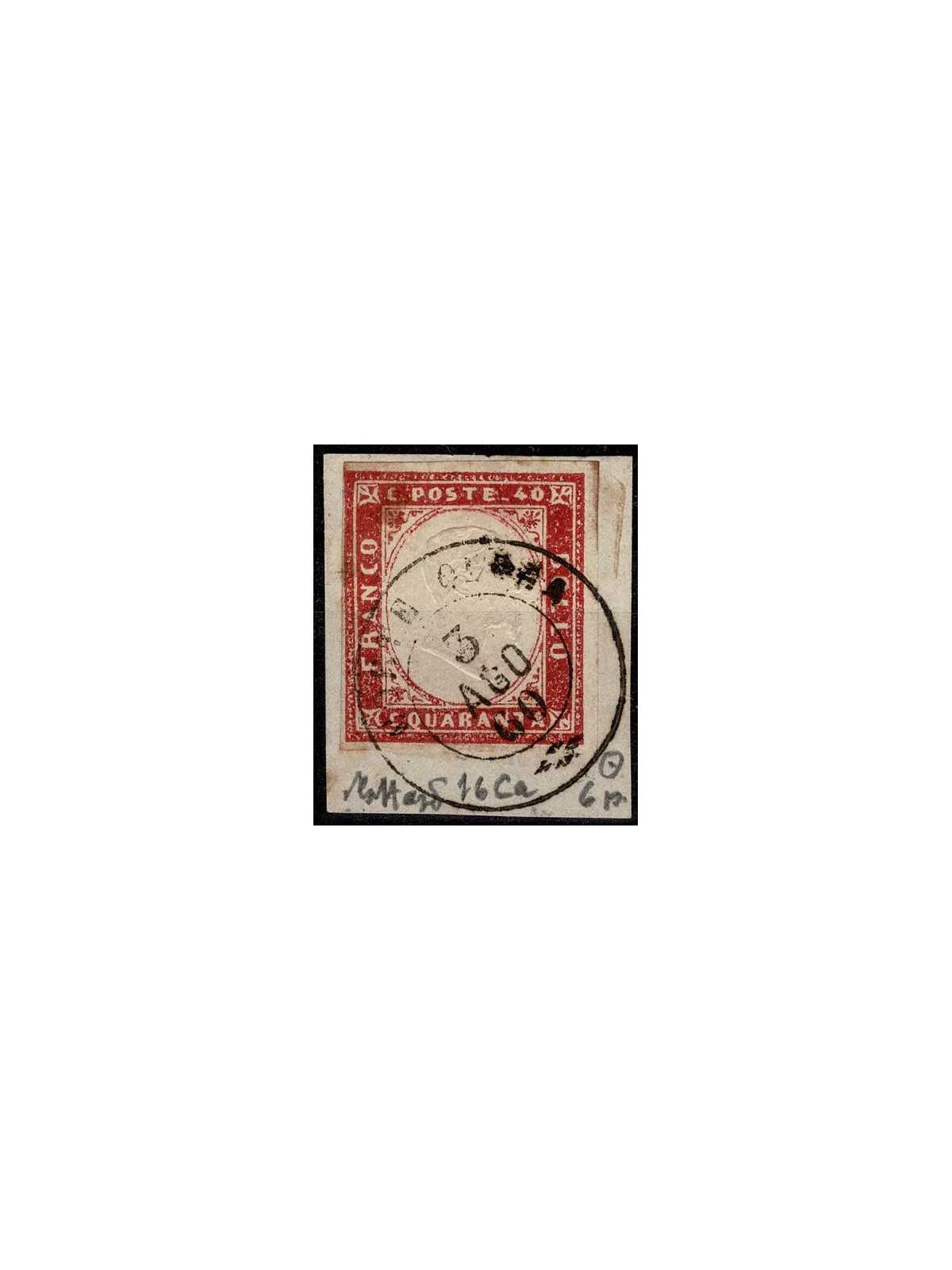 1860 SARDEGNA 40 CENT CARMINIO SASSONE N 16Ca SU FRAMMENTO CAFFAZ MF23073