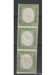 1863 SARDEGNA V. EMANUELE II° 5 CENT. VERDE STRISCIA DI TRE MLH MF128960