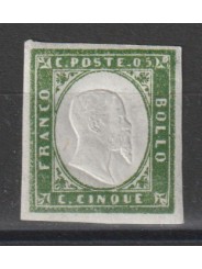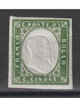 1863 SARDEGNA V. EMANUELE II° 5 CENT. VERDE NUOVO MLH MF128959