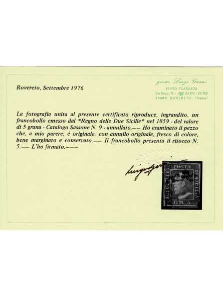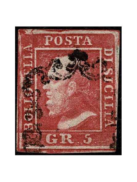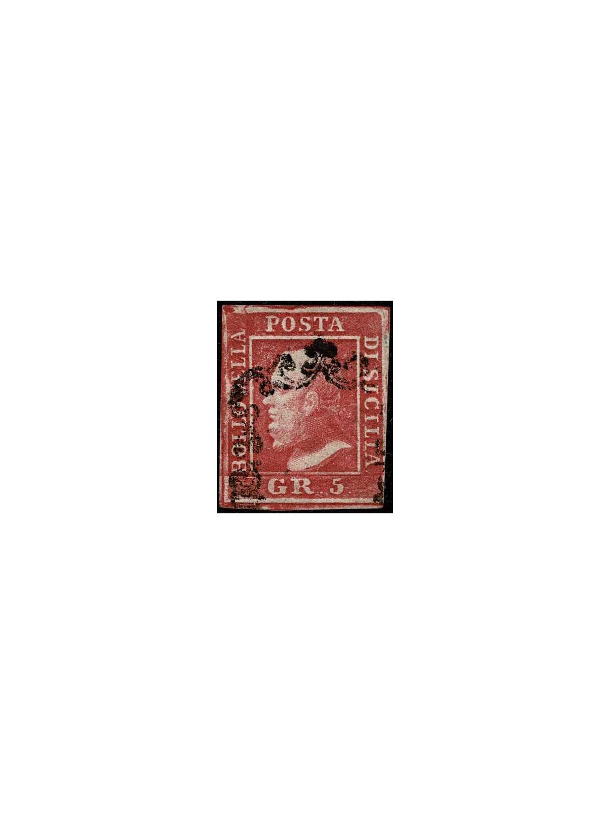 1859 SICILIA 5 GRANA ROSA CARMINIO I TAVOLA SASS N 9 USATO GAZZI MF52921