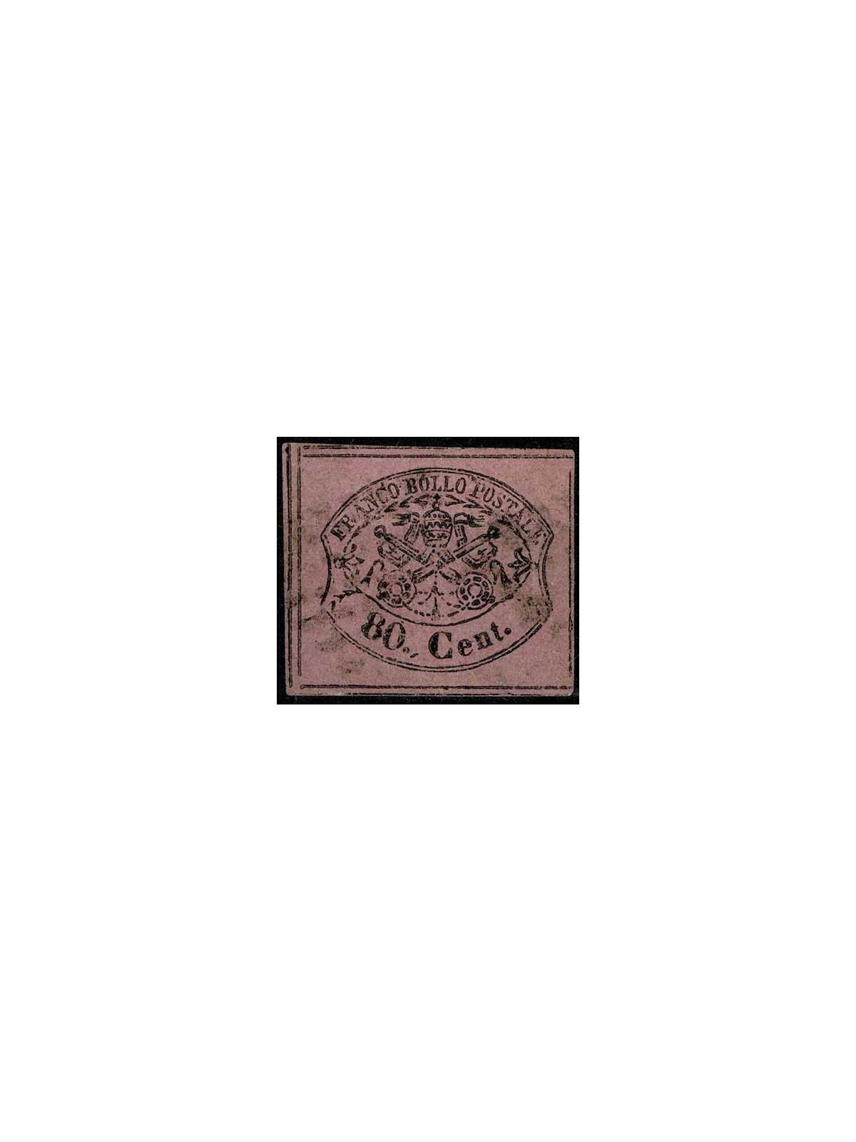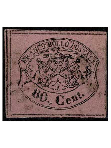 1867 STATO PONTIFICIO 80 CENT ROSA LILLACEO VIVO SASSONE N. 20 A. DIENA MF24200