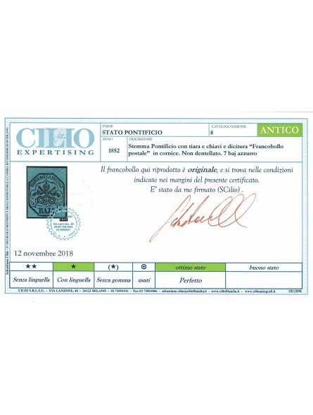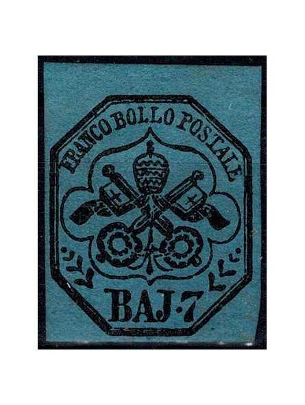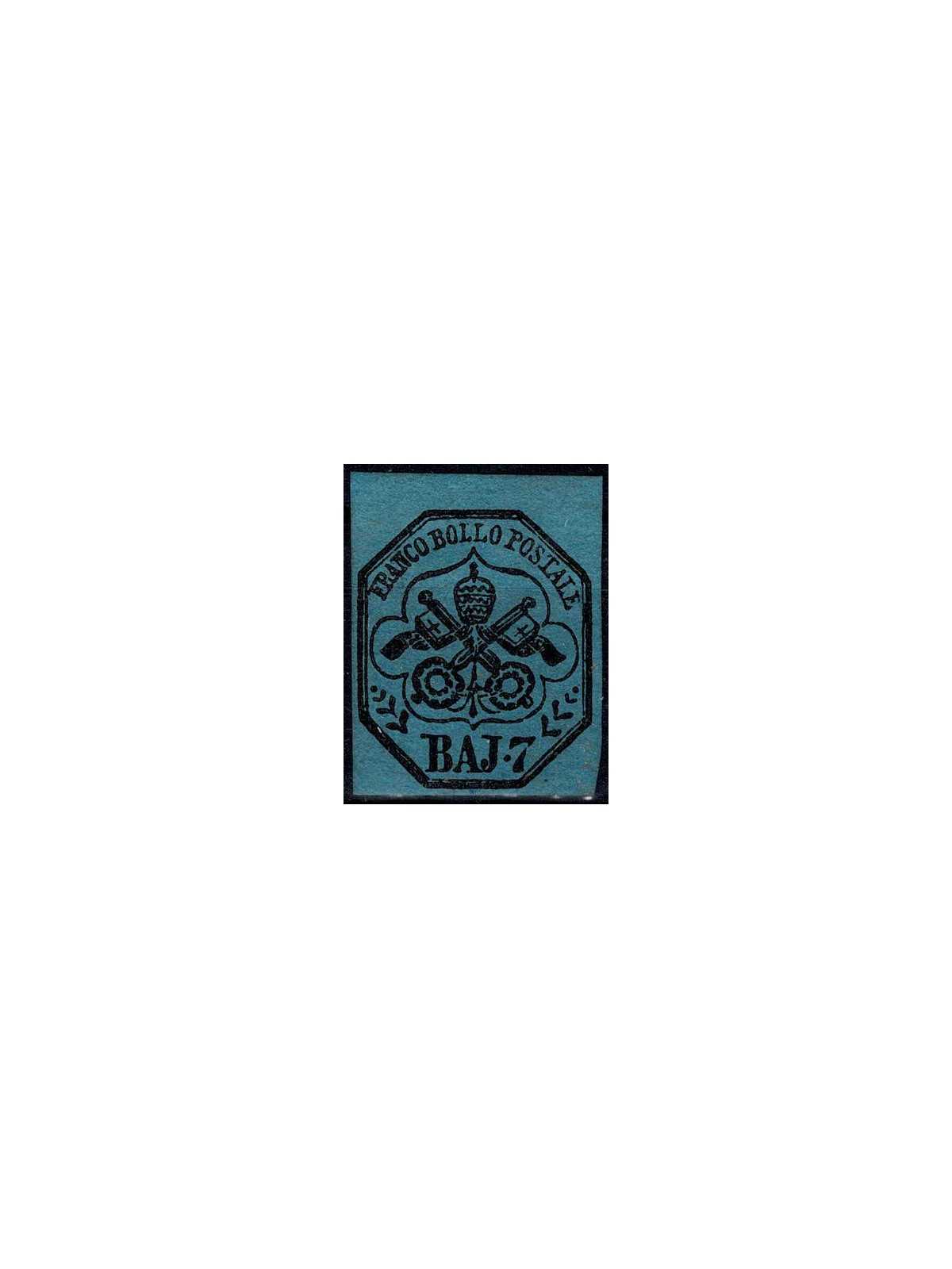 1852 STATO PONTIFICIO 7 BAJ AZZURRO SASSONE N. 8 NUOVO MLH CILIO MF58598