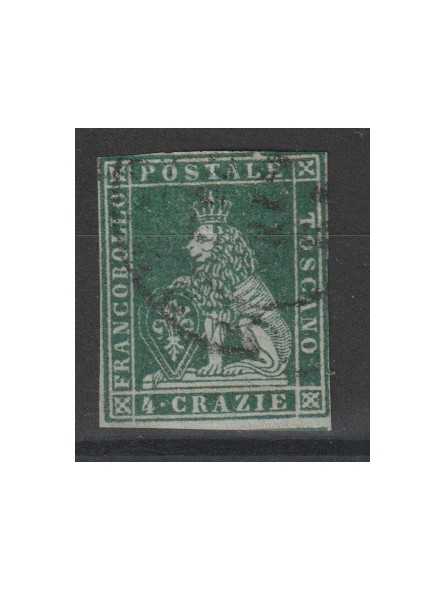 1851 TOSCANA 4 CRAZIE VERDE SU GRUGIO UNIF. N°6 USATO MF128978