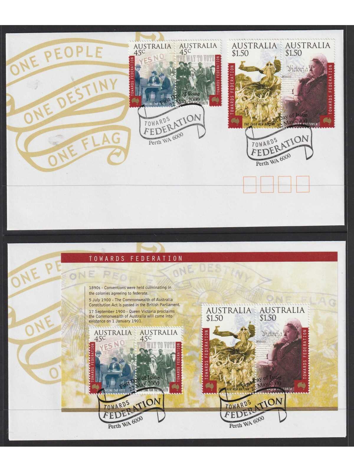 2000 AUSTRALIA 100° FEDERAZIONE 8 VALORI SU 2 BUSTE FDC MF129766