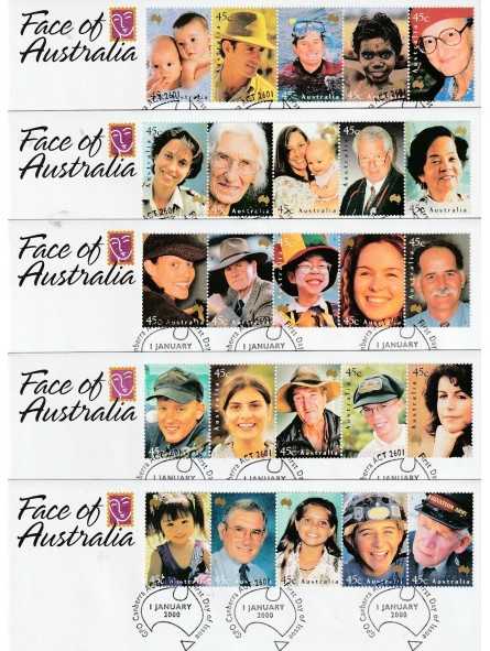 2000 AUSTRALIA VISI DI PERSONE AUSTRALIANE 25 VALORI SU 5 BUSTE FDC MF129773