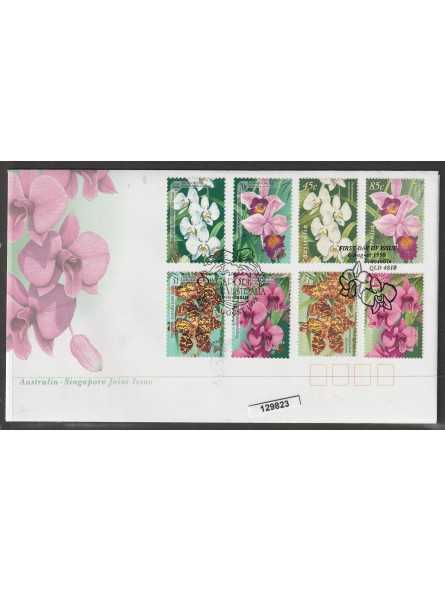 1998 AUSTRALIA FLORA ORCHIDEE + CONGIUNTA SINGAPORE 4+4 VAL. SU BUSTA FDC MF129823