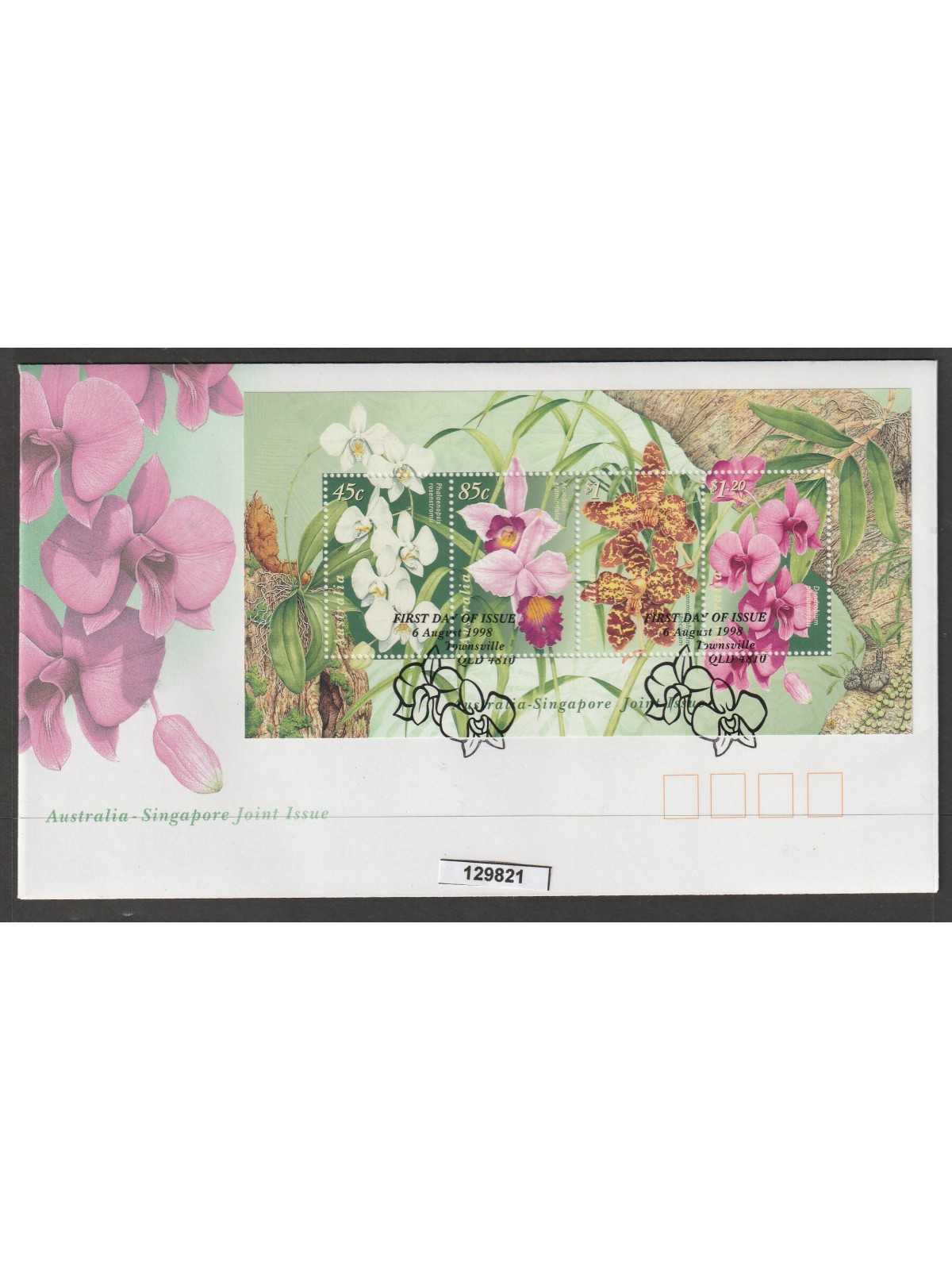 1998 AUSTRALIA FLORA ORCHIDEE FOGLIETTO 4 VAL. SU BUSTA FDC MF129821