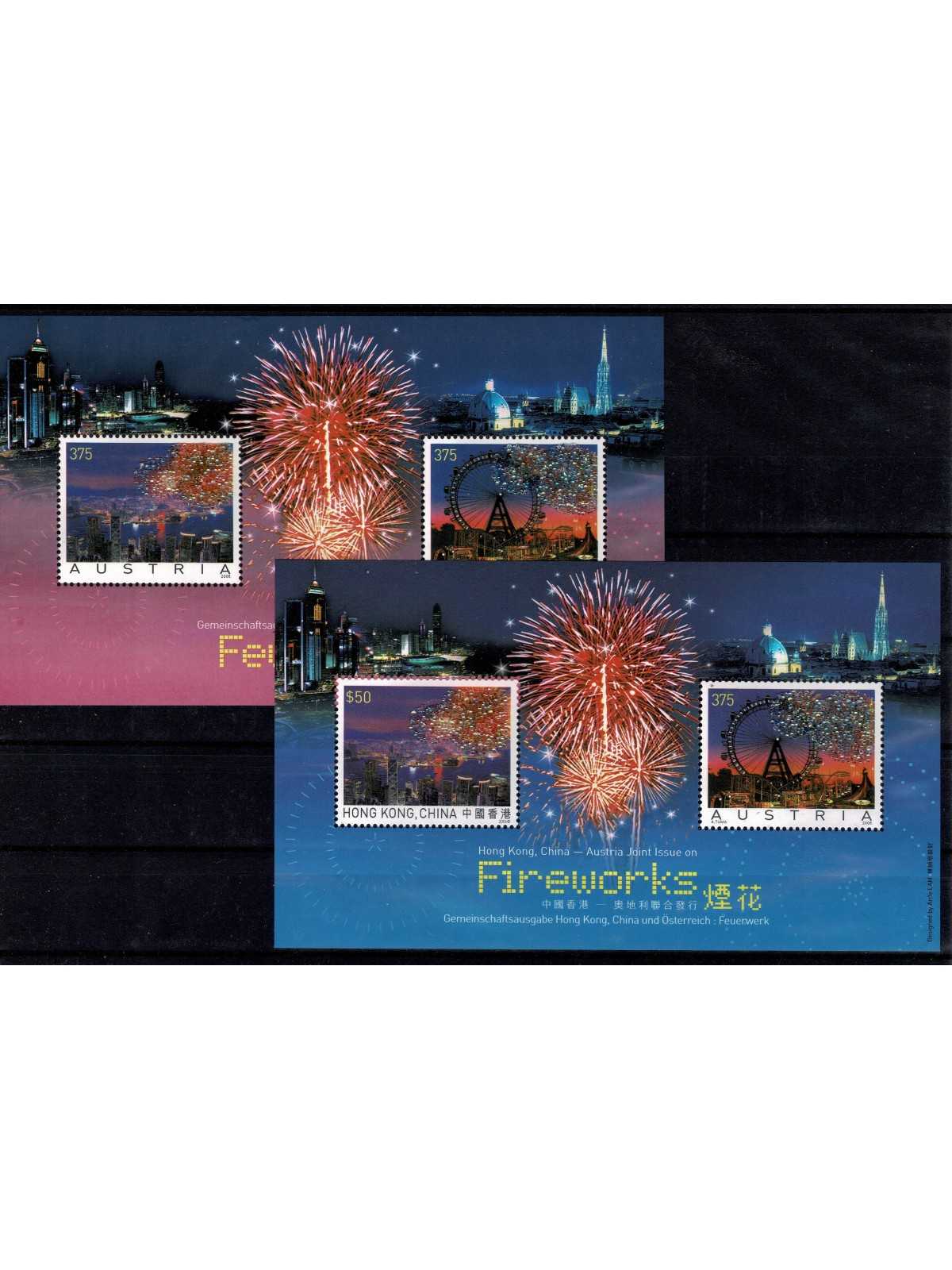 2006 AUSTRIA FUOCHI D'ARTIFICIO EM. CONGIUNTA HONG KONG 2BF 40 / 41 MNH MF133036
