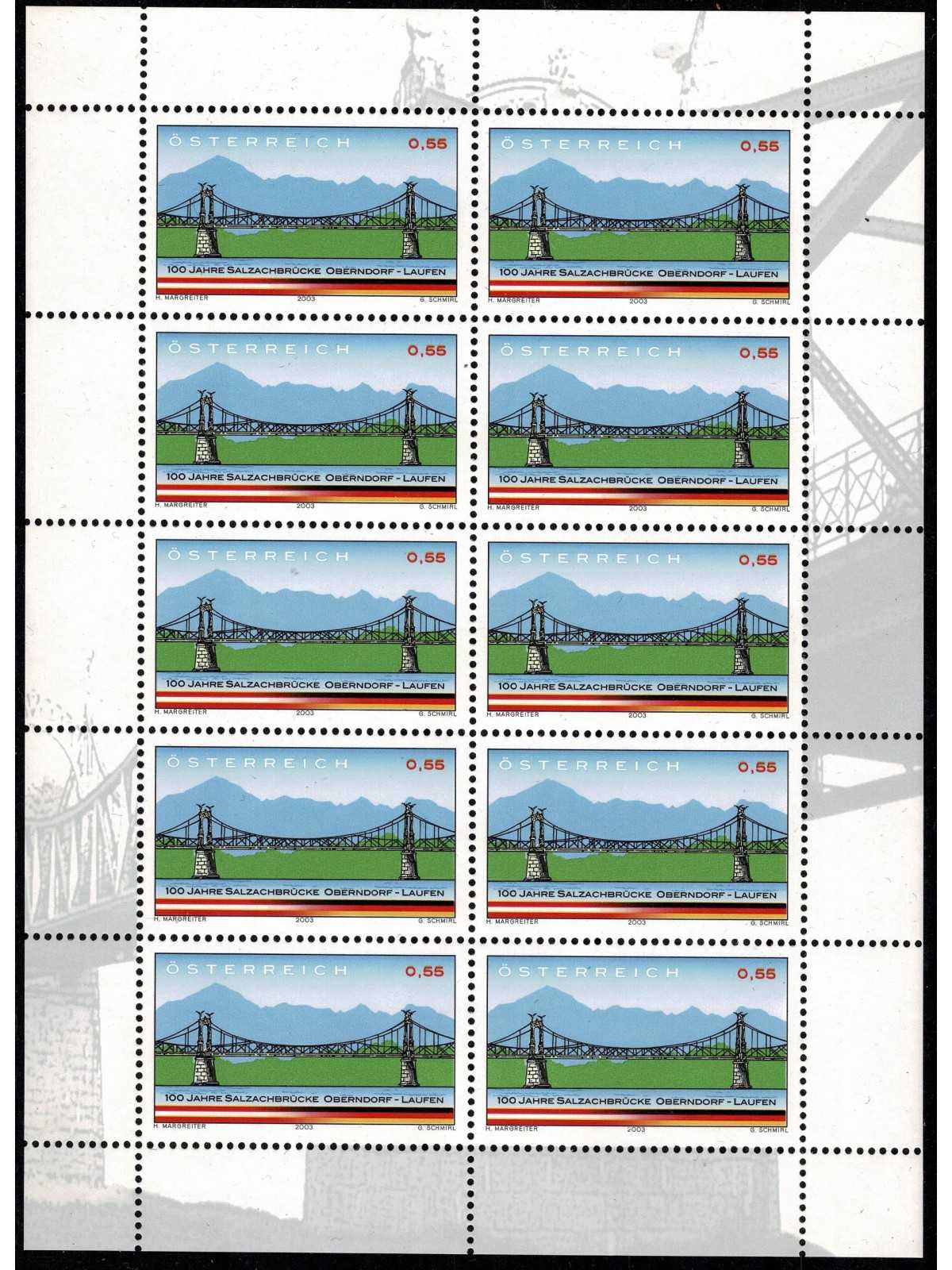 2004 AUSTRIA CENT. PONTE OBERNDORF E LAUFEN MINIFOGLIO DI 10 V. MNH MF134079