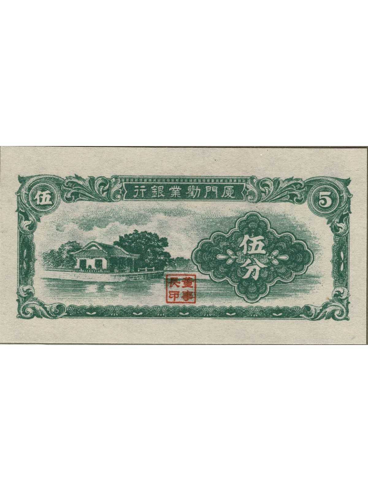 CINA THE AMOY INDUSTRIAL BANK BANCONOTA 5 CENTS MF132771