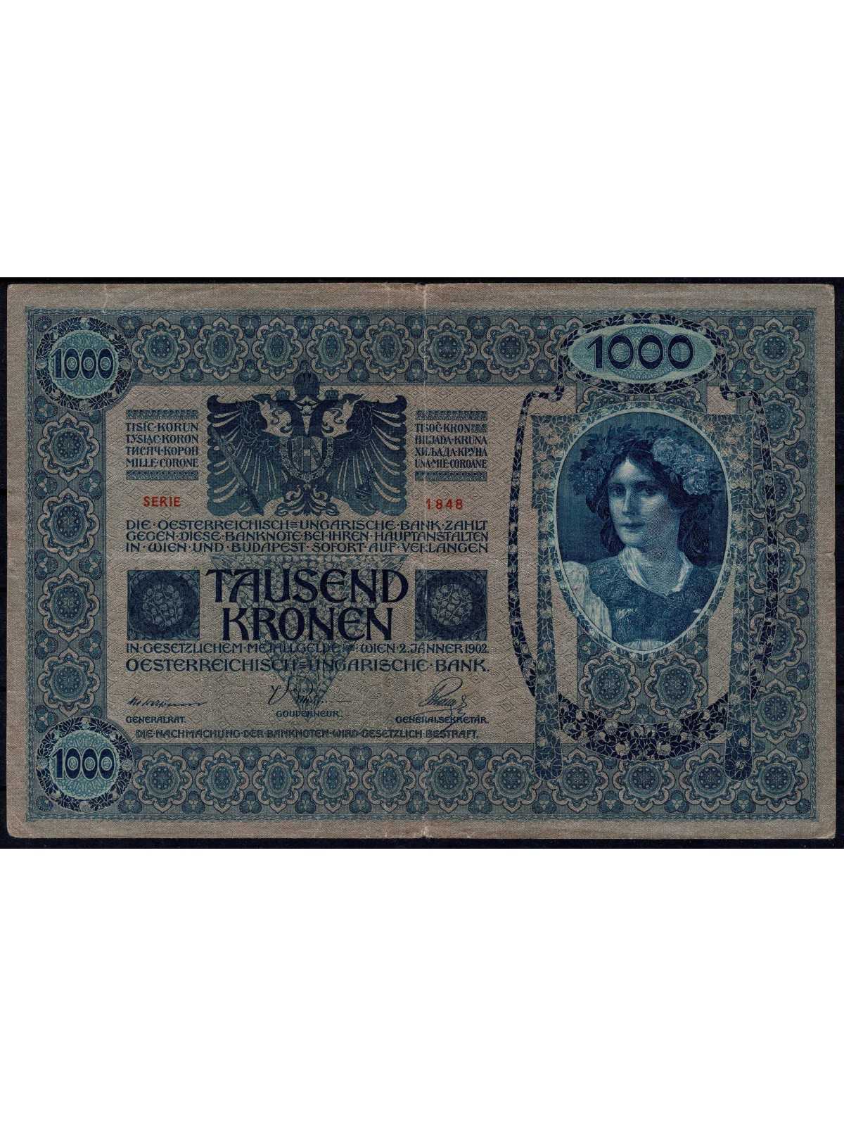 AUSTRIA 1902 BANCONOTA 1000 KRONEN CIRCOLATA MF133191