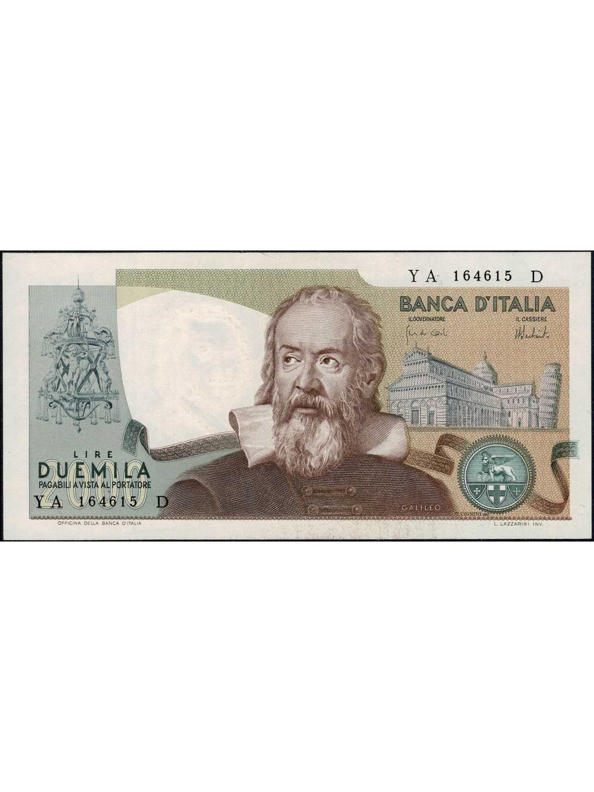 1973 - 08 - 10 BANCONOTA LIRE 2000 GALILEO GALILEI QFDS MF133182