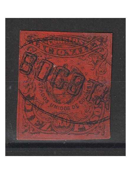 1865 COLOMBIA 1 VALORE DA 10p. STAMPATO IN NERO SU CARTA COLORATA ROSSO ARANCIO - COME DA FOTO