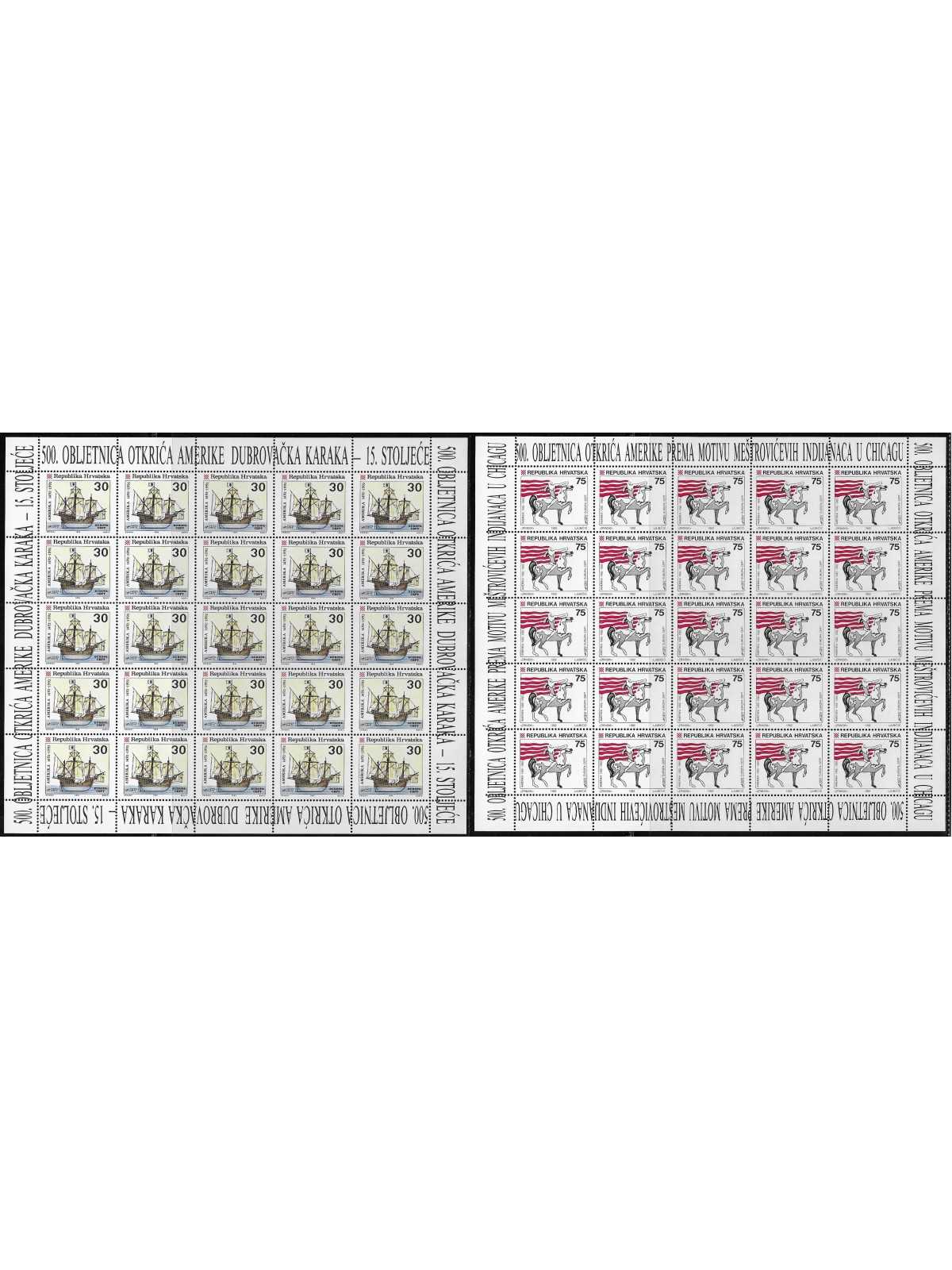 1995 CROAZIA REPUBBLICA 500 ANNI SCOPERTA DELL'AMERICA 2 MINIFOGLI MNH MF113662