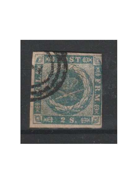 1854-63 DANIMARCA DANMARK STEMMA UNIF. N° 3 USATO MF127647
