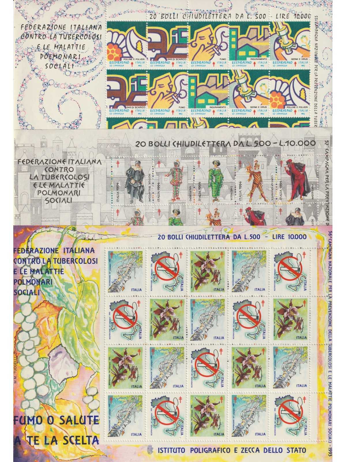 I.P.Z. ANN0 1993 TRE FOGLIETTI ERINNOFILI DI 20 VALORI DA LIRE 500 CIASCUNO NUOVI MNH