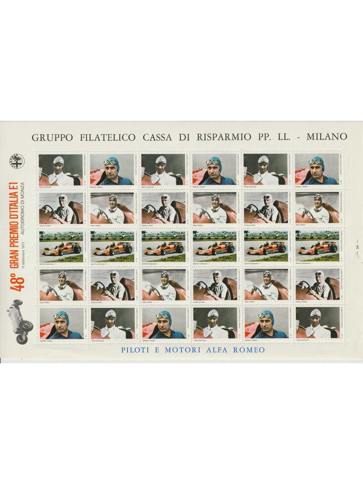 1977 ERINNOFILO GRAN PREMIO F. 1 FOGLIO DI TRENTA MF129196