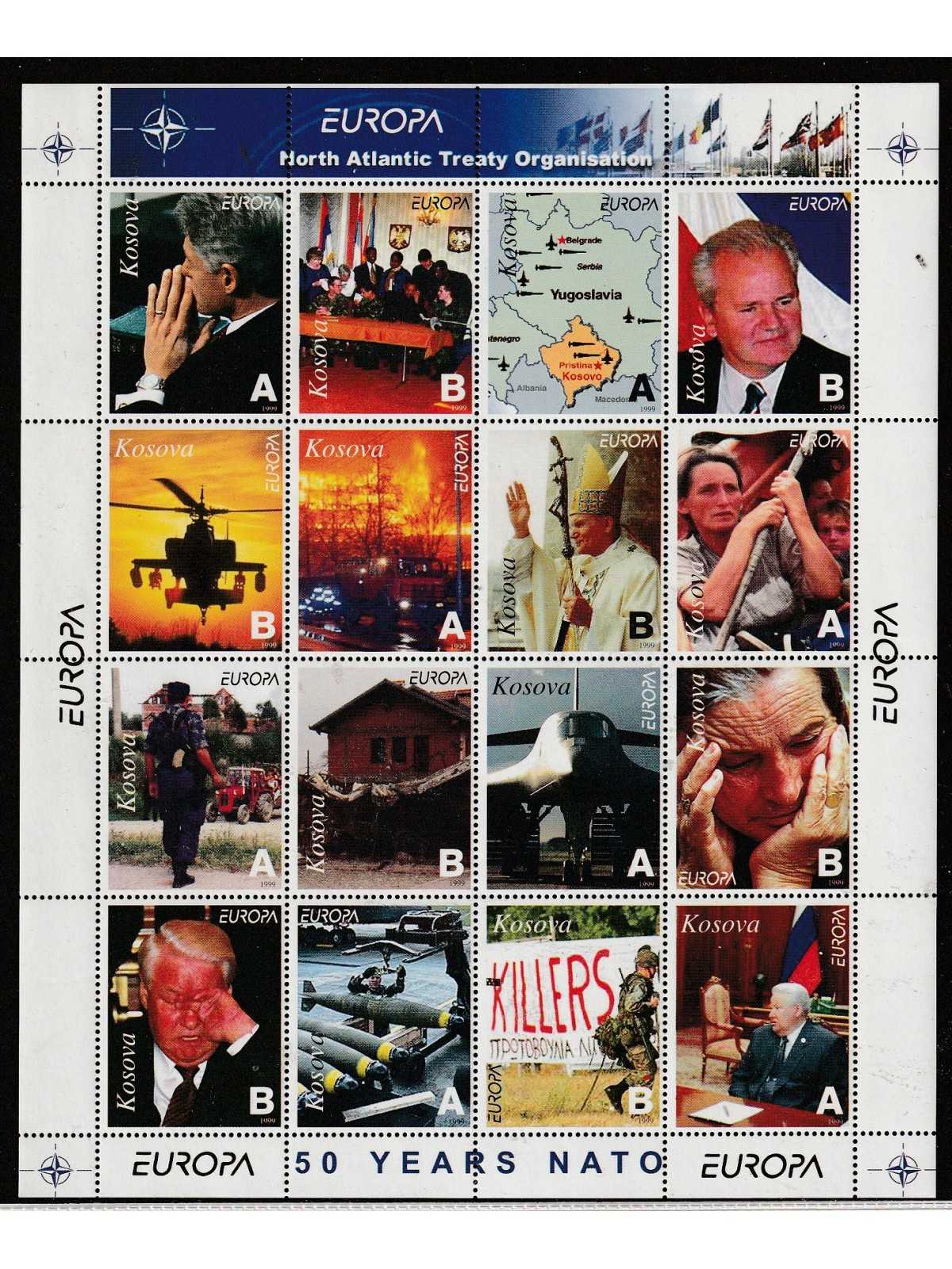 1999 - EUROPA 50 YEARS NATO ERINNOFILI MINIFOGLIO N°1 DI 16 VALORI NUOVI SENZA MNH
