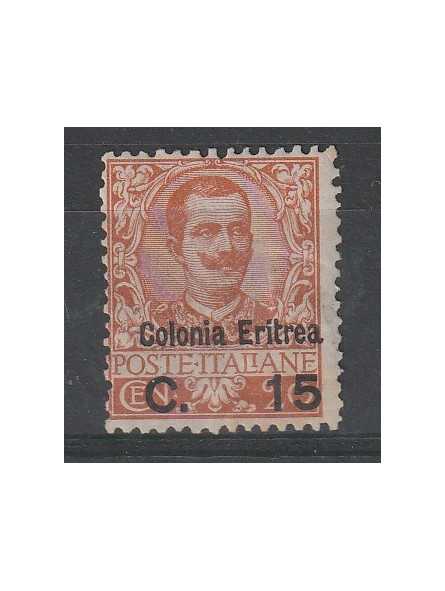 FRANCOBOLLO D'ITALIA DEL 1905 CON LA STESSA SOVRASTAMPA 15 C. SU 20 C. E COLONIA ERITREA