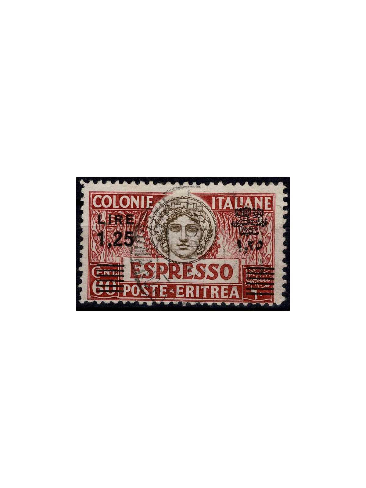 1927 - 35 ERITREA ESPRESSO 1.25 L SU 60 C SOPRASTAMPA NERO USATO CAFFAZ MF133362