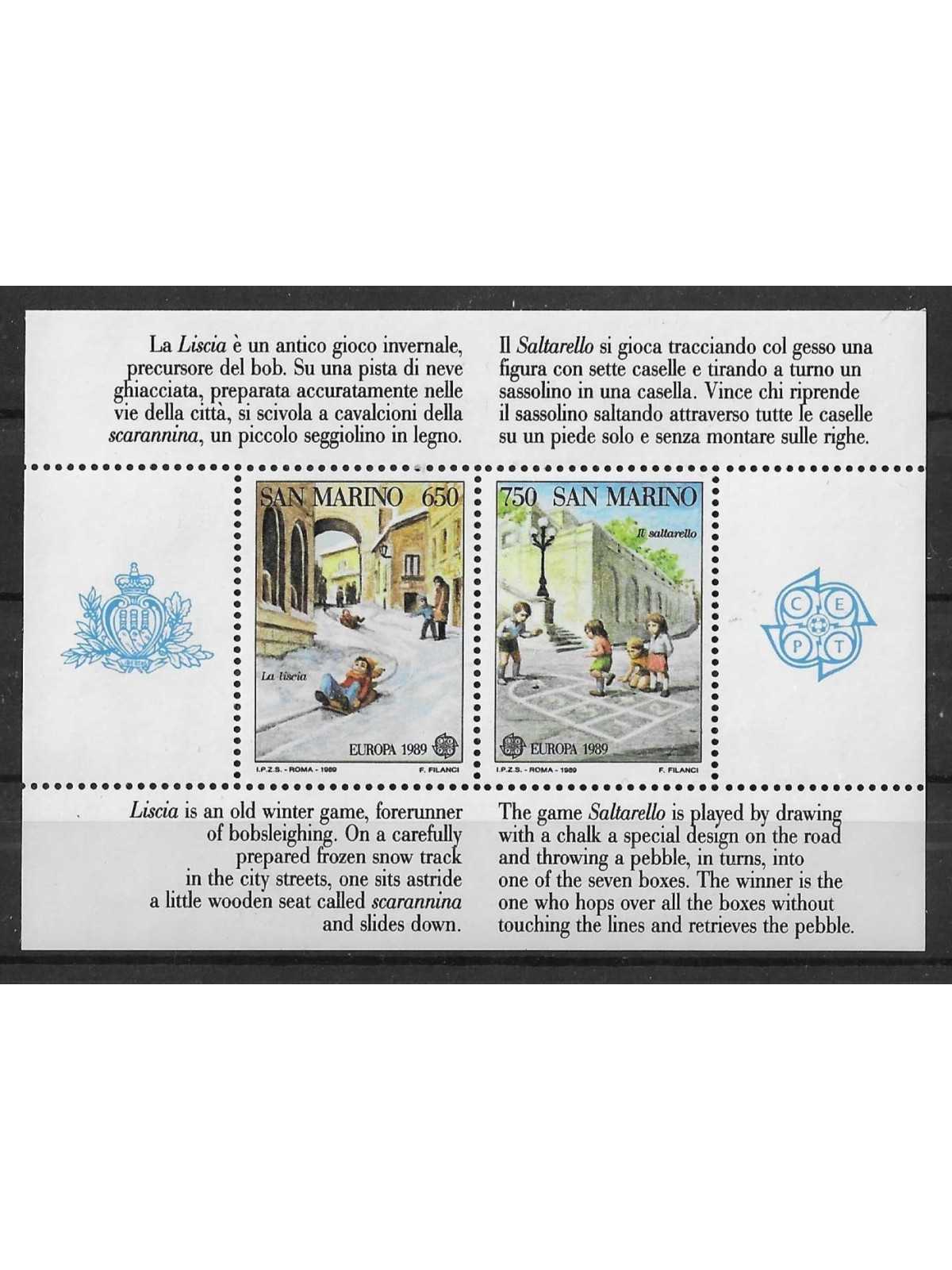 1989 - SAN MARINO - EUROPA CEPT - GIOCHI INFANTILI - 1 BF NUOVO MNH MF113566