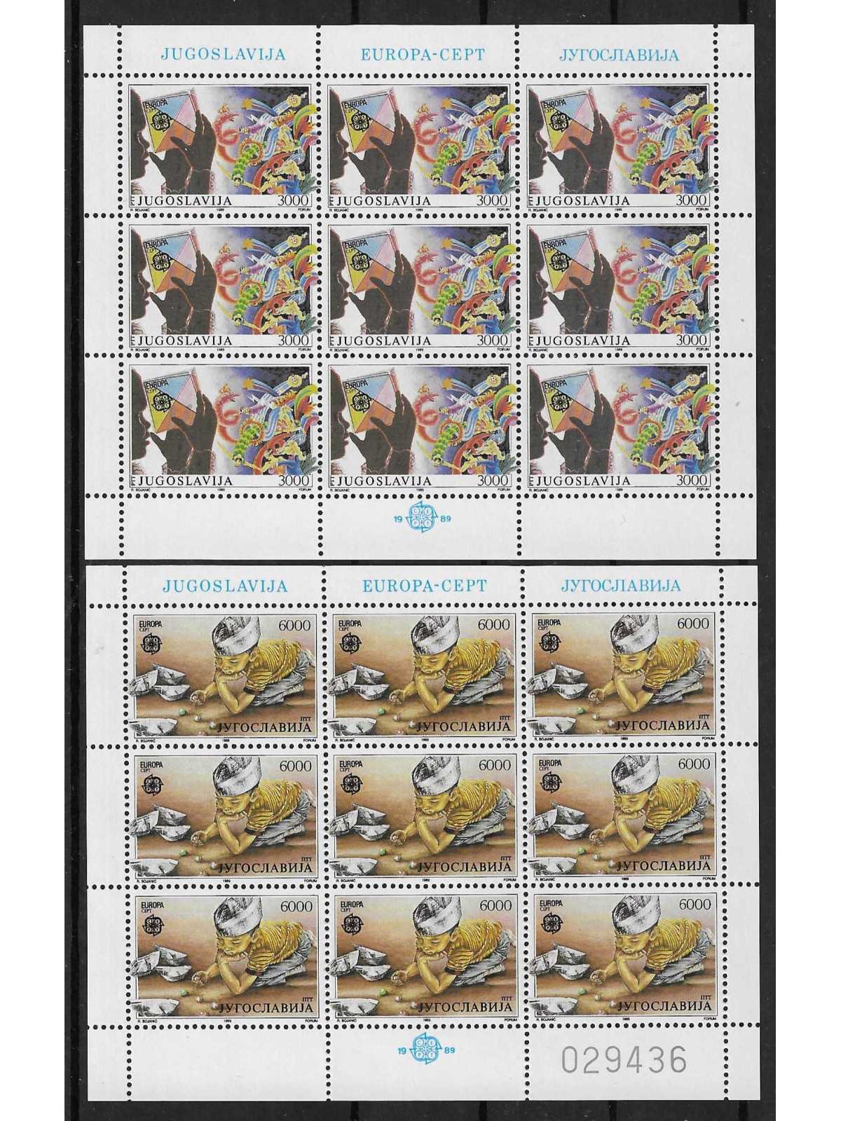1989 - JUGOSLAVIA - EUROPA CEPT - GIOCHI INFANTILI - 2 MINIFOGLI MNH MF113617