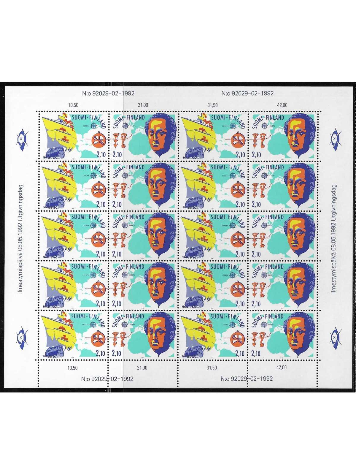 1992 - FINLANDIA - EUROPA CEPT - SCOPERTA AMERICA - 1 MINIFOGLIO MNH MF113664
