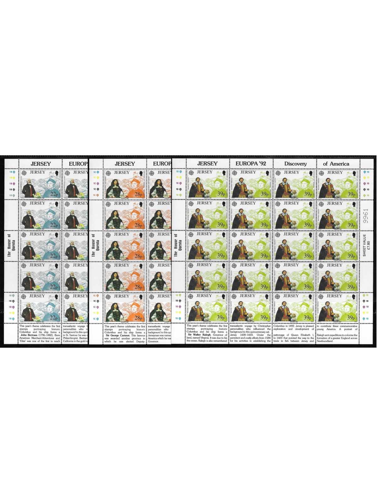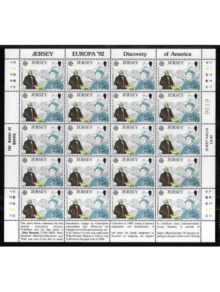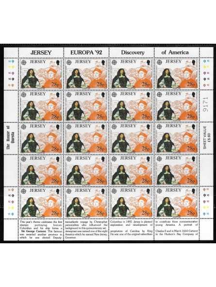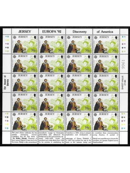 1992 - JERSEY - EUROPA CEPT - SCOPERTA AMERICA - 3 MINIFOGLI MNH MF113669