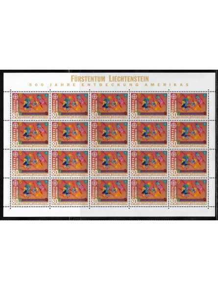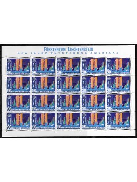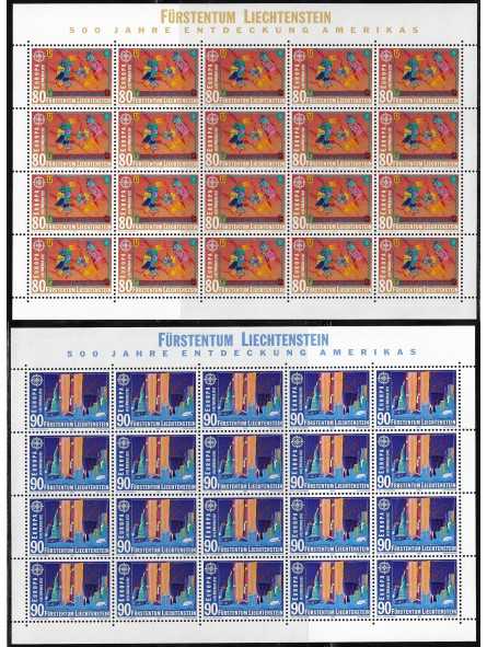 1992 - LIECHTENSTEIN - EUROPA CEPT - SCOPERTA AMERICA - 2 MINIFOGLI MNH MF113671