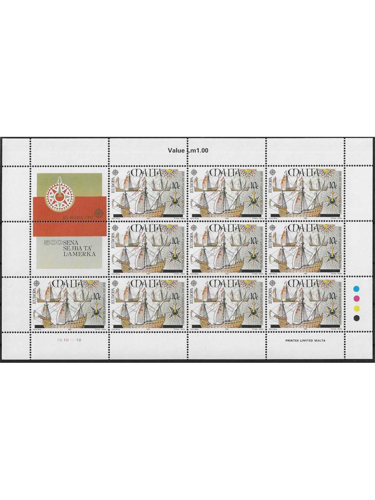 1992 - MALTA - EUROPA CEPT - SCOPERTA AMERICA - 2 MINIFOGLI MNH MF113672