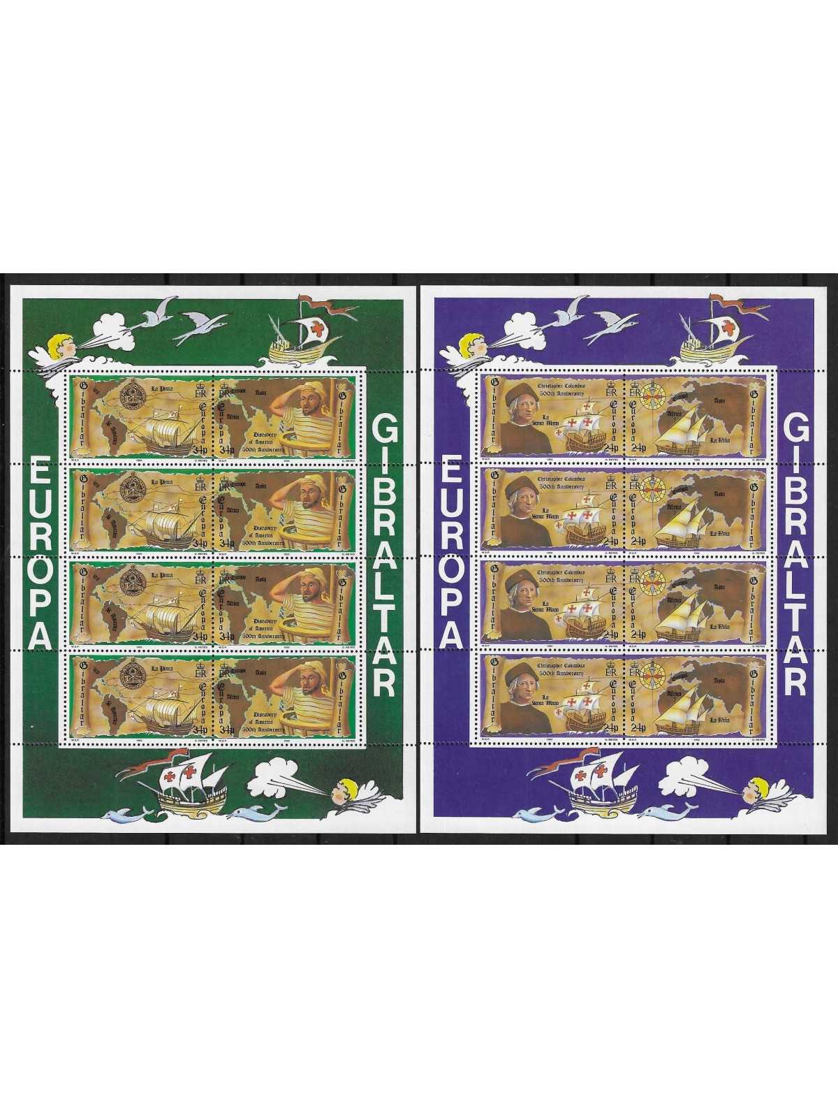 1992 - GIBILTERRA - EUROPA CEPT - SCOPERTA AMERICA - 2 MINIFOGLI MNH MF113674