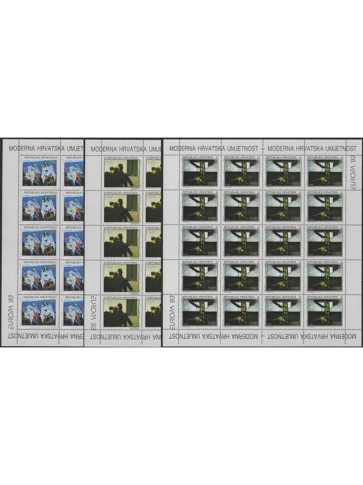 1993 - CROAZIA - EUROPA CEPT ARTE - 3 MINIFOGLI NUOVI MNH MF113681