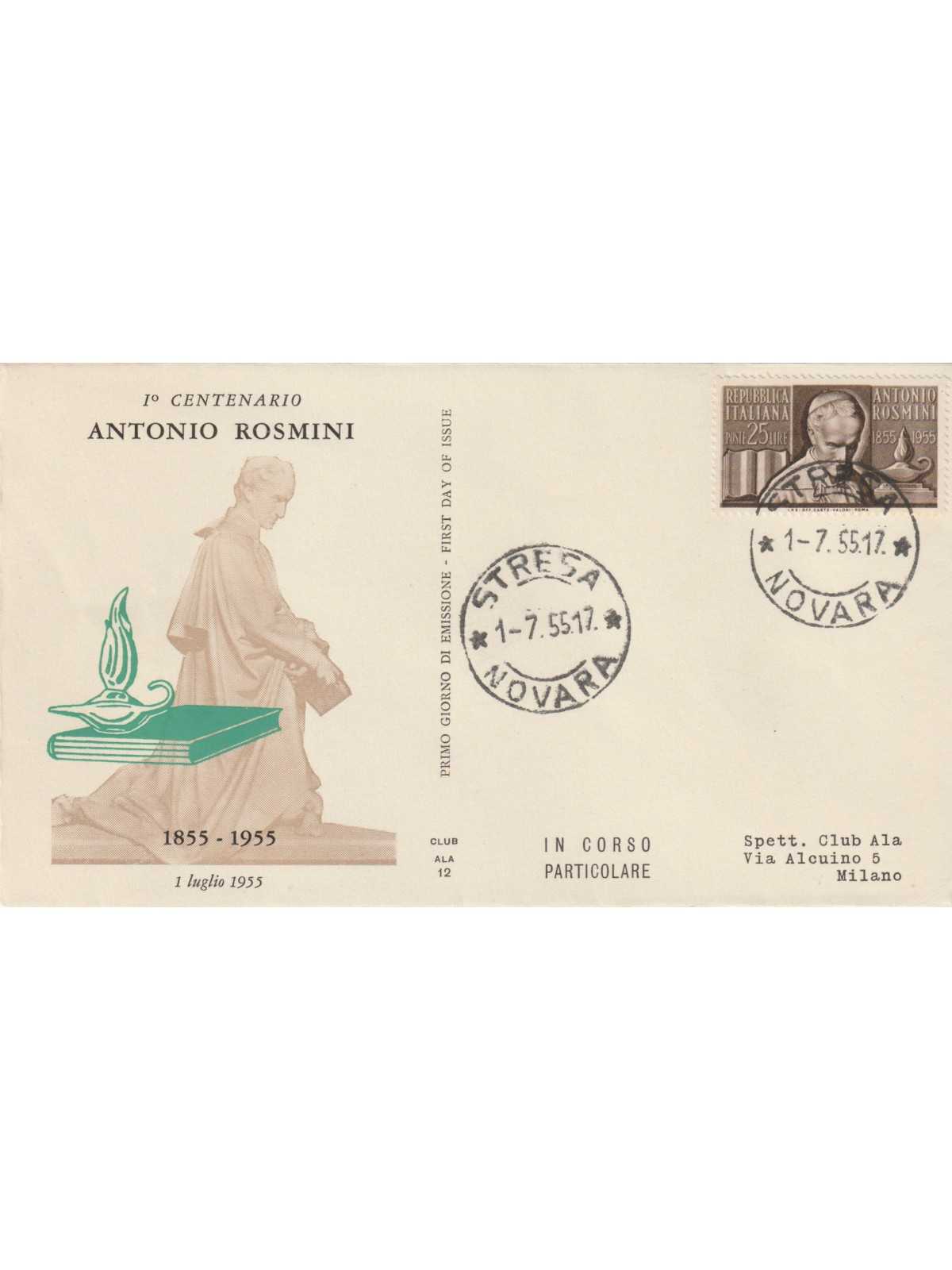 1955 FDC ALA ITALIA ROSMINI NON VIAGGIATA MF125325