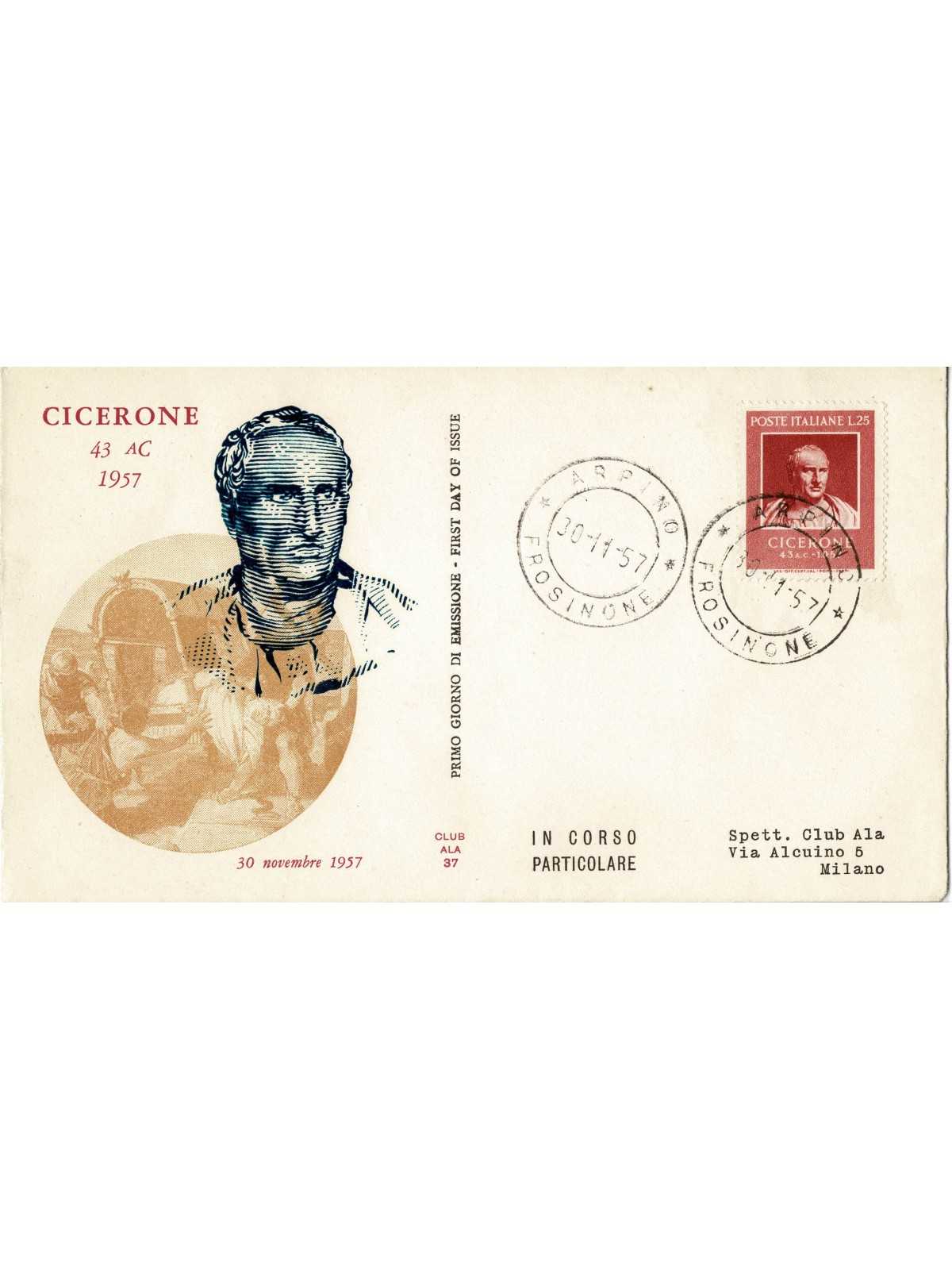 1957 FDC ALA ITALIA BIMILLENARIO MORTE CICERONE NON VIAGGIATA MF132090