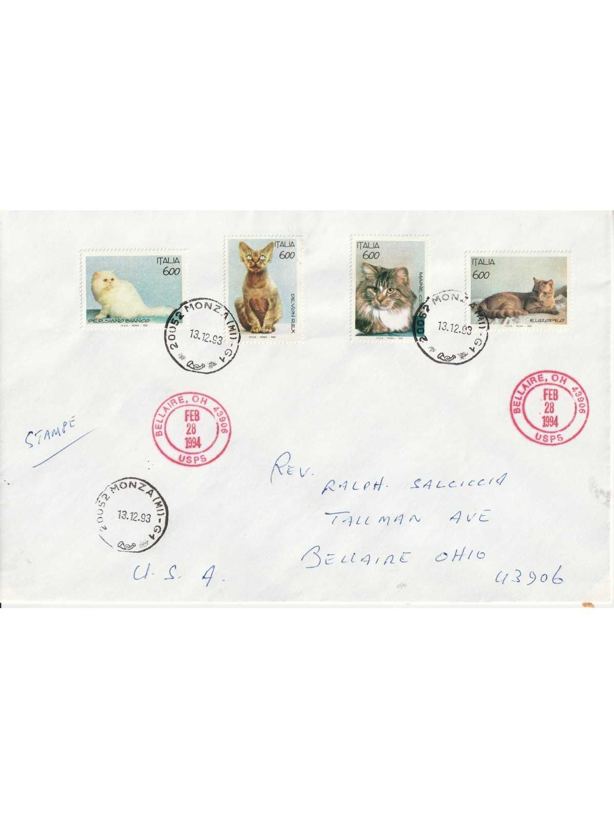 1993 FAUNA GATTI UNA BUSTA COME FOTO VIAGGIATA IN U.S.A. MF129797
