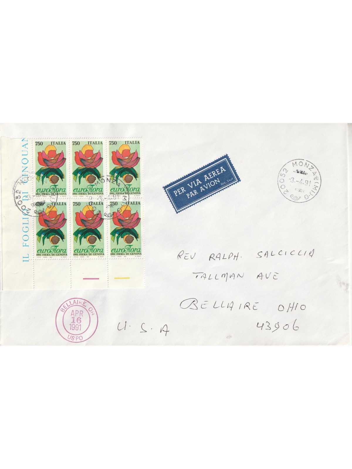 1991 EUROFLORA UNA BUSTA COME DA FOTO VIAGGIATA IN U.S.A. MF129849