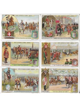 NOTA BENE!! LA SERIE VIENE VENDUTA COME VARIETA' IN QUANTO LA FIGURINA B (GUARDIA DEL CORPO REALE UNGHERESE) PRESENTA IL SUO RETRO CON UN TAGLIO SPOSTATO IN LINGUA FRANCESE, RENDENDOLA UN EDIZIONE MOLTO RARA.