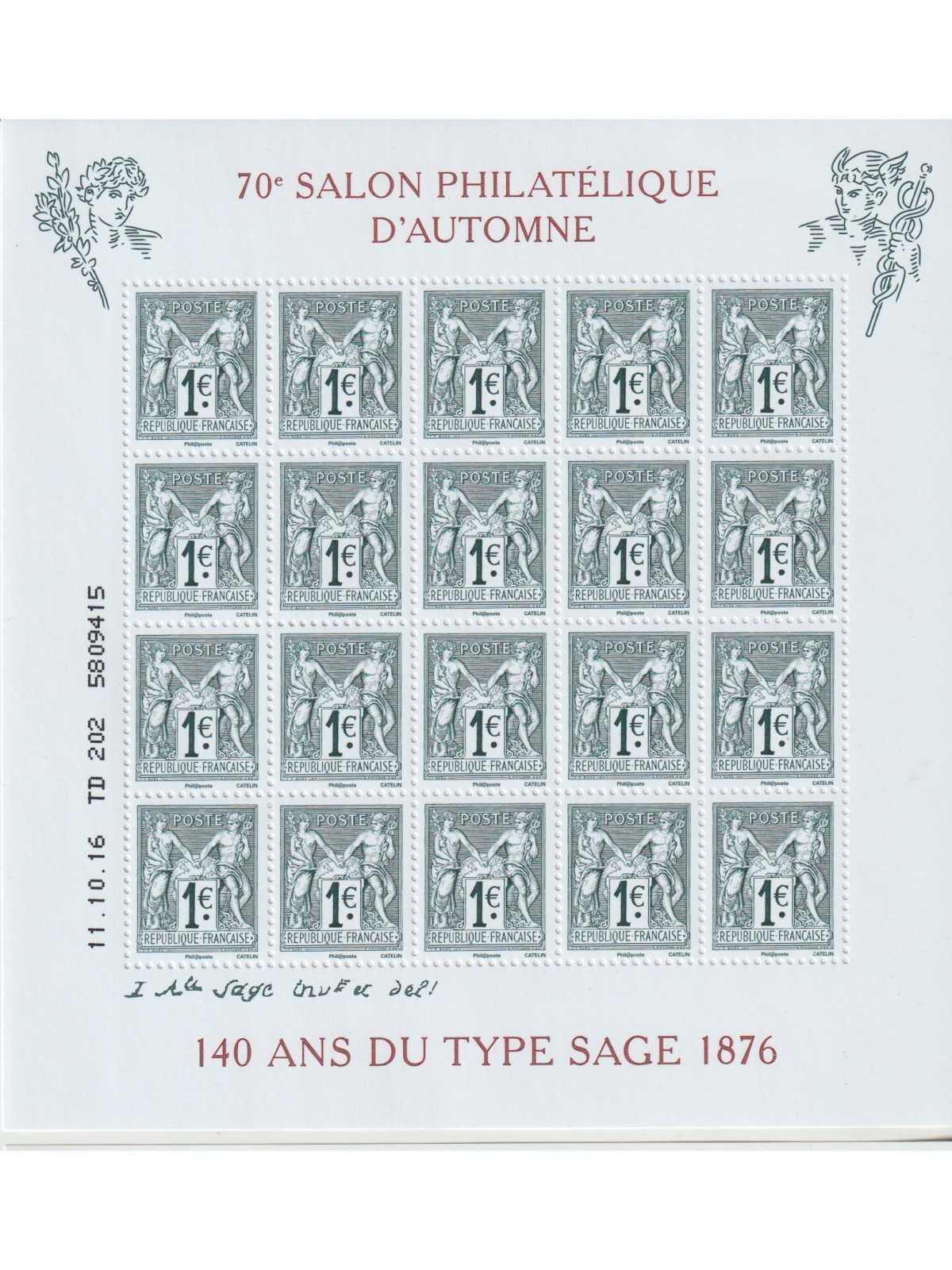 2016 FRANCIA FRANCE 70° SALONE FILATELICO PARIGI 1BF. 20 VAL. MF128372