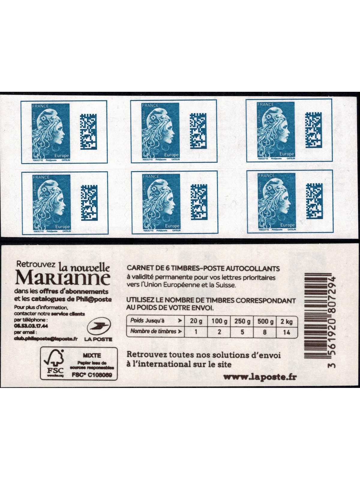 2018 FRANCIA MARIANNE L'ENGAGEE EUROPE LIBRETTO 6 V. NON PIEGATO MNH MF133066