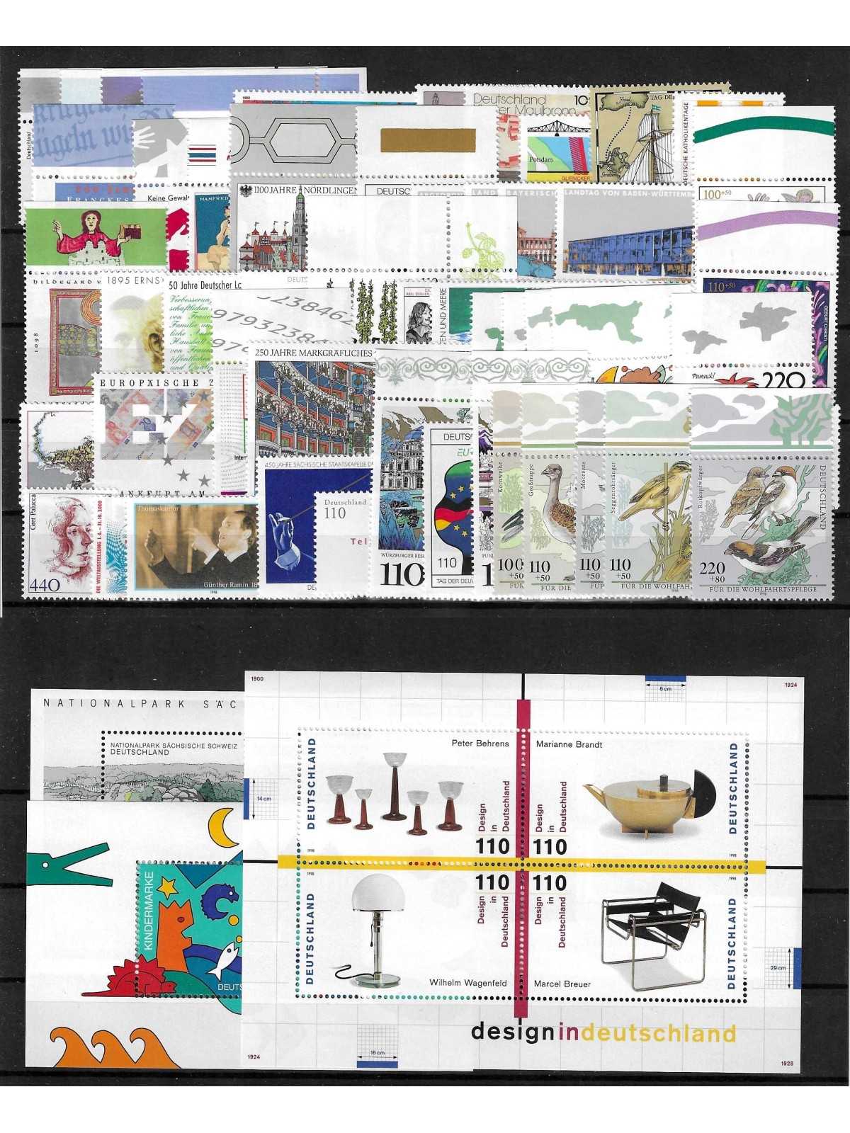 1998 GERMANIA FEDERALE ANNATA COMPLETA 53 VALORI + 4 BF NUOVI MNH MF7862