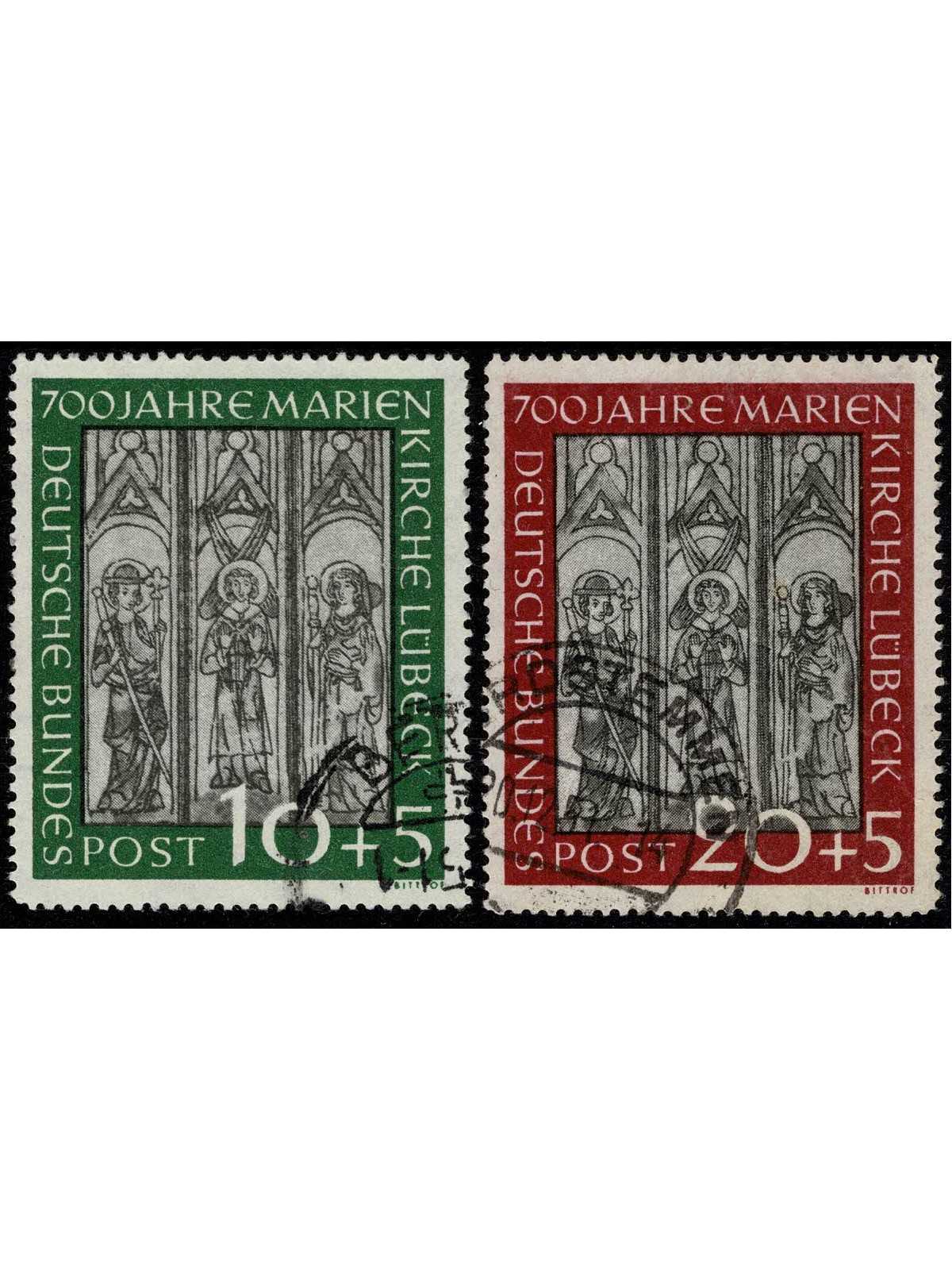 1951 GERMANIA FEDERALE 7 CENT CATTEDRALE DI LUBECCA 2 V USATI MF133810