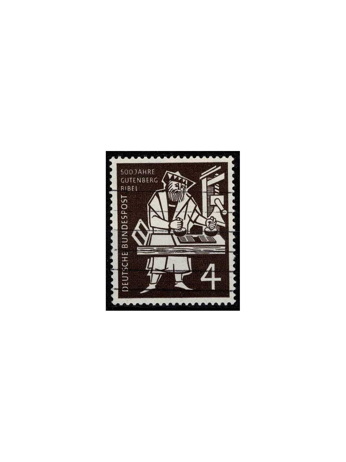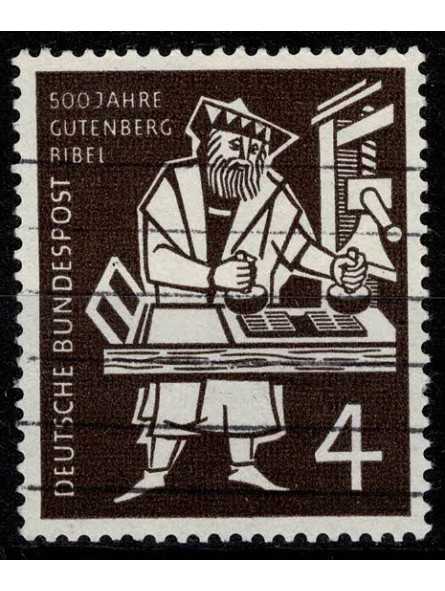 1954 GERMANIA FEDERALE 5 CENT. STAMPA BIBBIA GUTENBERG USATO MF133840