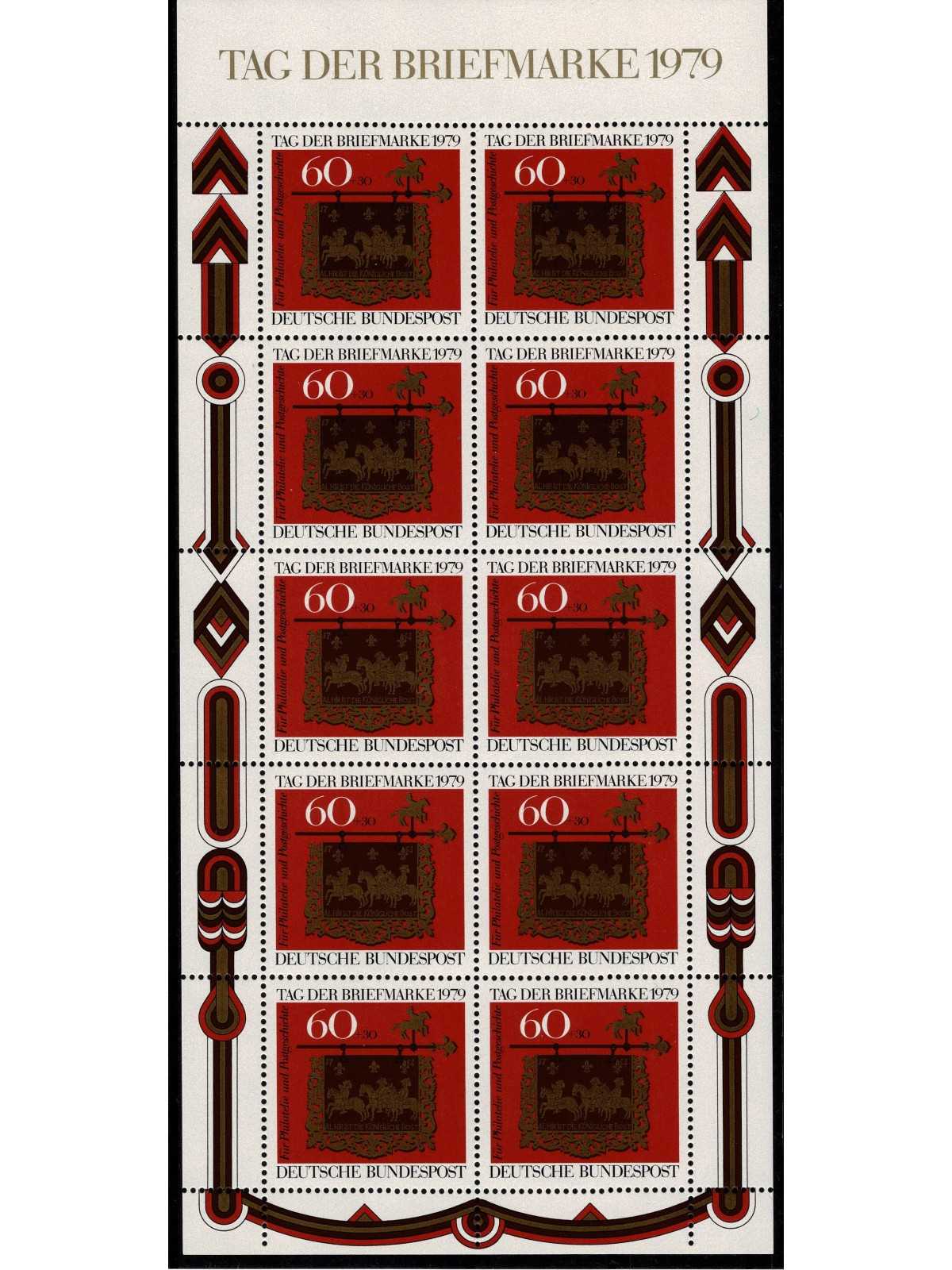 1979 GERMANIA FEDERALE GIORNATA DEL FRANCOBOLLO MINIFOGLIO 10 V. MNH MF133874