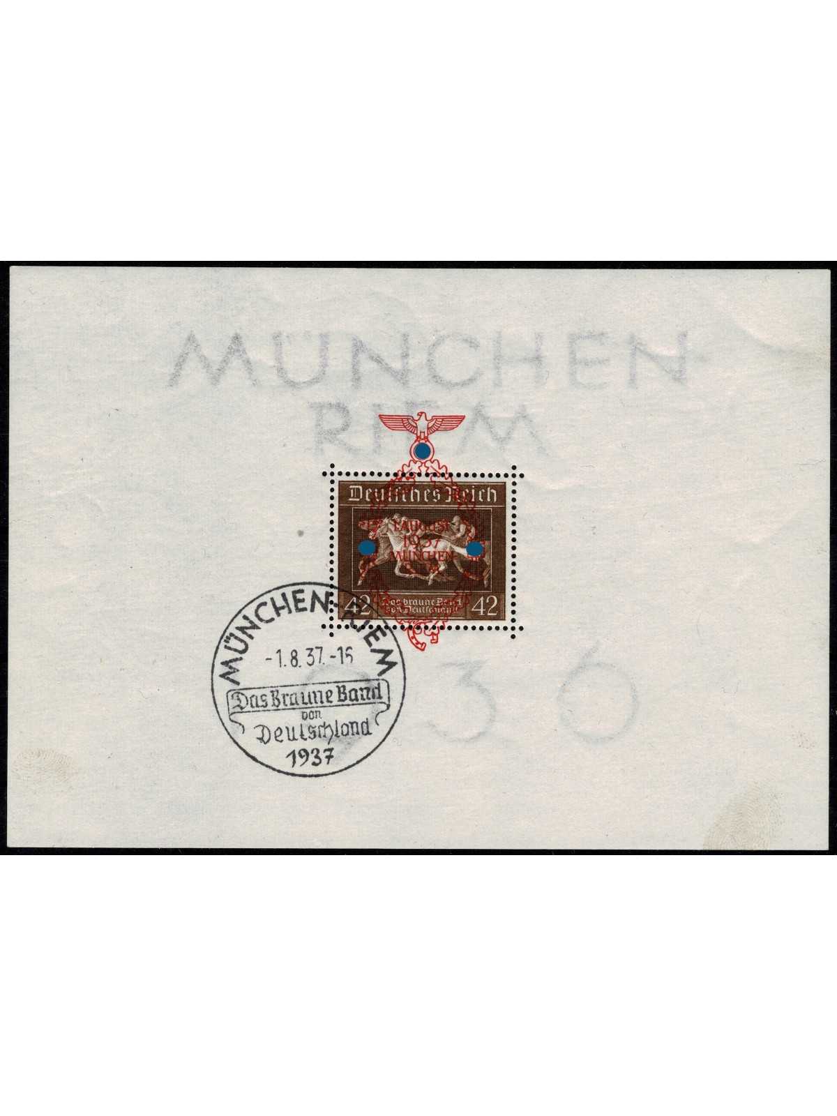 1937 GERMANIA REICH N. BF 7 NASTRO BRUNO SOPRAST. 1 FOGLIETTO USATO FDC MF127282