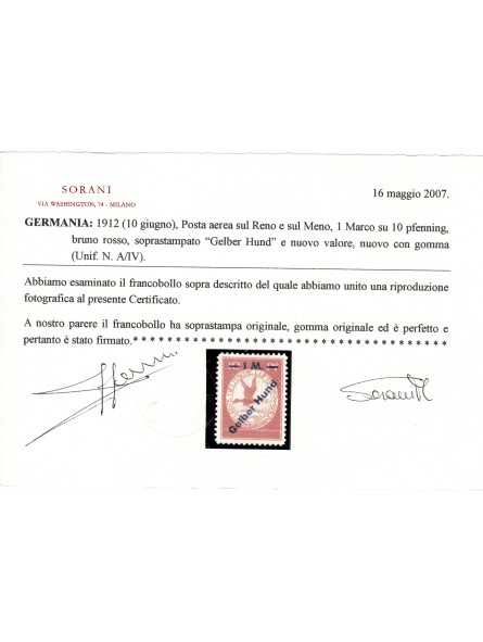 1912 GERMANIA REICH N. AIV POSTA AEREA SUL RENO E SUL MENO MLH SORANI MF127290